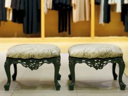 The Moda stool structure is in carved solid beechwood. Available in the following finishes: antiqued silver/gold or lacquered Upholstering made with fabrics from the Modà and Modà Vanity collections.