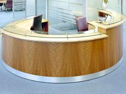 FIRST IMPRESSIONS is the definitive range of modular reception counters. Each version using 38mm thick tops with solid timber edges can give a solid or lighter look depending upon the edge design and veneer selected. These office reception counters have an unrivalled flexibility of design, with a vast choice of shape, size and module permutation lending itself to any number of layouts, creating an individual look and a strong corporate image. DDA modules can be easily and fluently added into the design layout.
