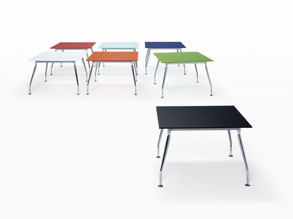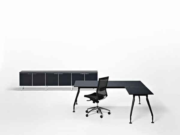 GLAMOUR is a stylish executive desk enhanced by the elegant aluminium die cast leg and the superb thin line work tops. The option to combine wood with coloured glass elements underlines the fashionable design of this range.
