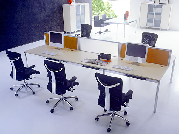 Numbers that, thanks to a wide dimensional choice, let the integrated system of X4 bench desks be totally modular and complete, in order to work out executive and operative solutions and unique reception areas, integral with a wide range of partitions and chairs.