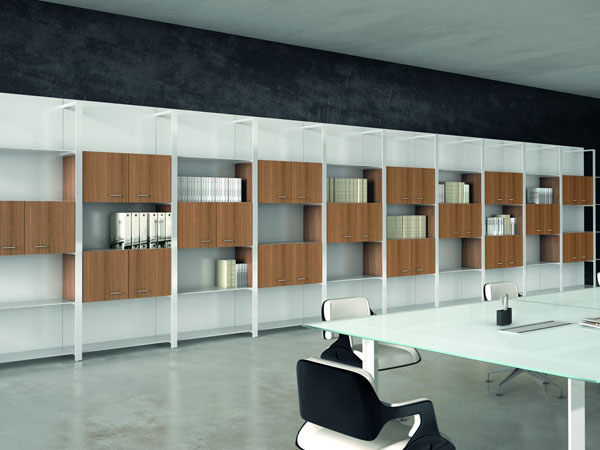 Cable grids are in painted steel silver finish and are held up by supports which allow the unfastening of the grid in order to insert cables.