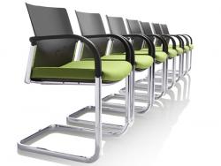 Chrome frame option. Stacks to 5 high. Trolley available. Linking device on 4 leg meeting chair.