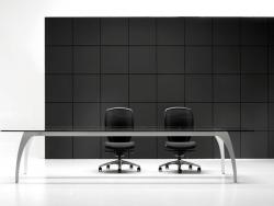 Luna is an executive range of boardroom and conference room furniture. The rectangular glass topped table system can either be an elegant meeting table for the conference room or an executive desk.