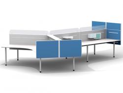 An economical desk-mounted screen system designed to attach to all furniture systems. Desk-mounted and floor-standing screens with upholstered height-extension panels and glass blades.