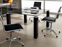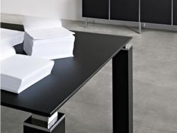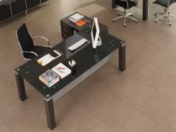 Tao Glass Desk Range Tao glass desks satisfies management office furniture criteria with two product options. Option one offers a modern design with rectangular wood and glass tops supported by linear metallic legs. The finishes of the glass tops, satin-finish or mocha-coloured ensure an elegant and light impression.