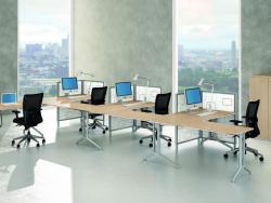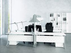 The X2 office desk develops itself around a structure with endless connections and components. A flexible line with different solutions. The structural details of the leg and its modularity create a new concept of operative space. Different types of screens, light and simple, divide the various working areas with discretion.