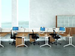 The efficiency of X2 allows you to set up complex and functional working areas. From simple integrated elements, you can get, step by step, modular desks and also aggregated and side by side desks.