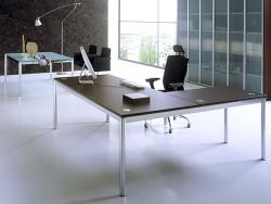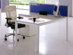 X4 office desks represents design and functionality, a system with the right numbers: 4 shapes of interchangeable legs on the same frame with 3 different finishes, 8 finishes of melamine tops with bicolour edge, 4 glass top colours for 144 different combinations.