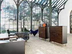 EGO is a senior level executive system featuring a 39mm thick wood veneer desktop combined with an elegant glass return and black base structure. Three supreme top finishes and definitive attention to detail underlines the exclusive character of this range.
