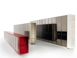 Glass Doors in Stopsol, Storage Cabinet Structures in Anthracite, Accessories in Dark Grey Methacrylate, Additional Inlays in Black Leather.