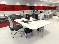 A great new addition, the Optineo steel desk with its all-metal modesty panel for that distinctive stylish look. Each bottom corner of the modesty panel features a line of holes producing a Design finish.