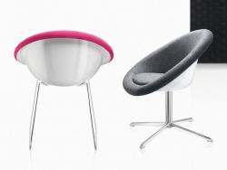 Gloss is an organic exploration of form and materials, the shiny ABS hard cocoons encapsulate contoured upholstery with elegant chromed steel frames.